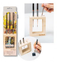 Comme coffret cadeau spécial, nous vous proposons ce set dans une belle repose pinceaux en bois. Elle peut être utilisée pour stockage, ainsi que pour faire sécher les pinceaux.