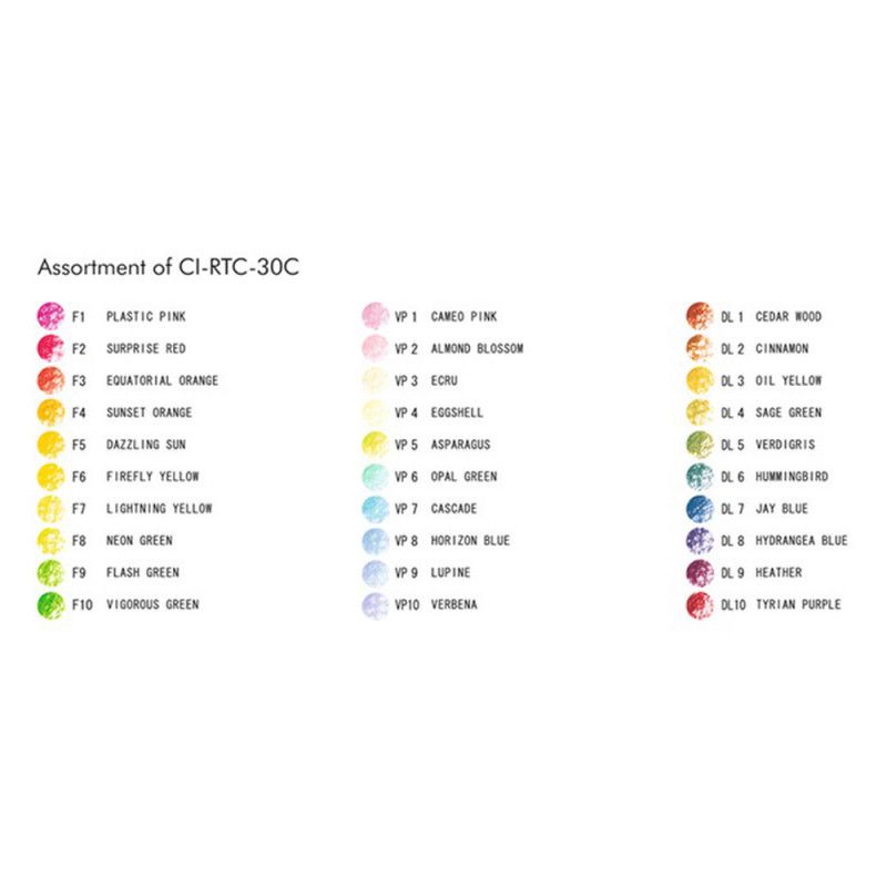 Les IROJITENs de Tombow sont des crayons de couleur de haute qualité, faits à la main, en bois précieux et dotés d'un élégant vernis couleur crème. le mot "IROJITEN" est le mot japonais pour "dictionnaire de couleurs", tels que ces 90 crayons de haute qualité sont présentés. Les IROJITENs sont disponibles en 3 sets de 30 couleurs chacun ( assortis en 3 boîtes de 10 crayons) : couleurs vives, pastels et sombres.