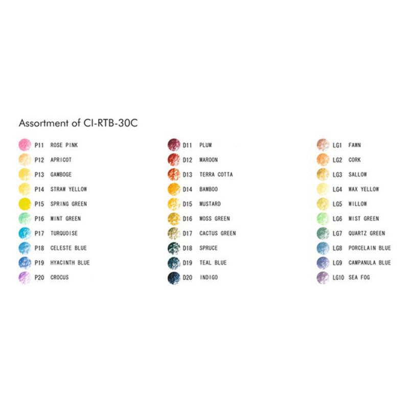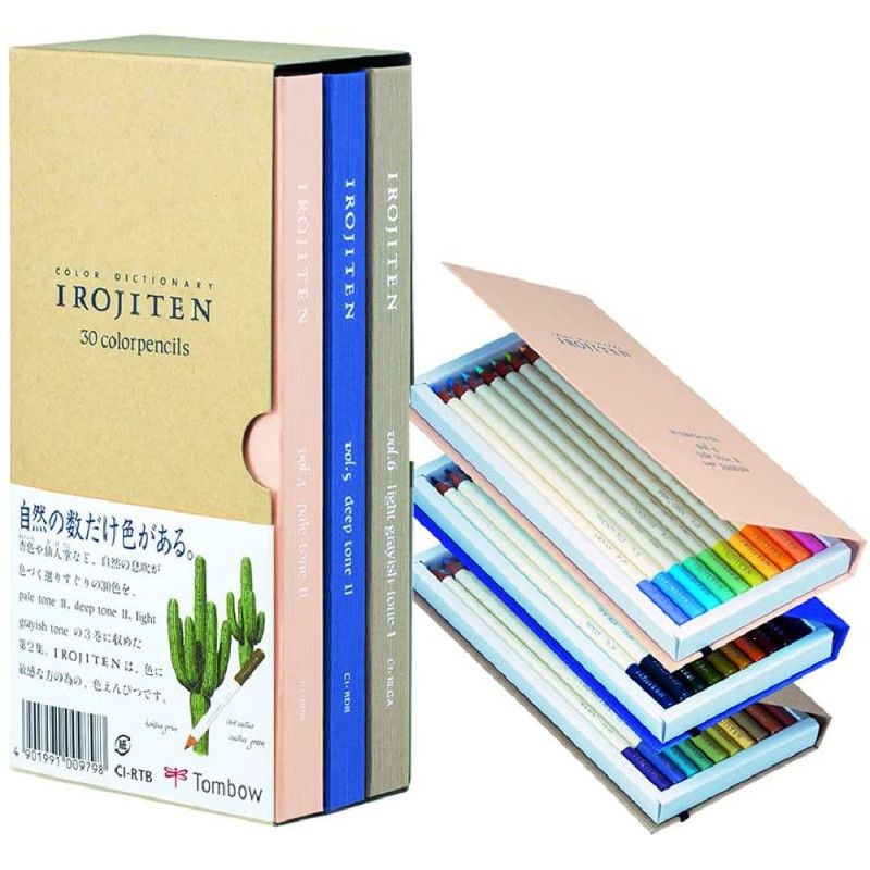 Les IROJITENs de Tombow sont des crayons de couleur de haute qualité, faits à la main, en bois précieux et dotés d'un élégant vernis couleur crème. le mot "IROJITEN" est le mot japonais pour "dictionnaire de couleurs", tels que ces 90 crayons de haute qualité sont présentés. Les IROJITENs sont disponibles en 3 sets de 30 couleurs chacun ( assortis en 3 boîtes de 10 crayons) : couleurs vives, pastels et sombres.