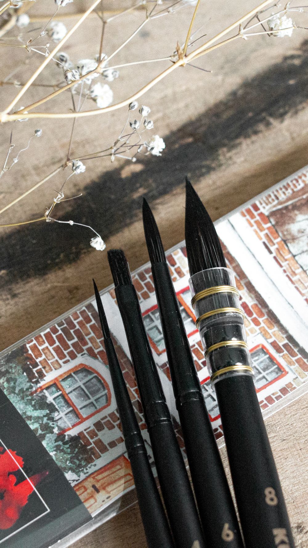 Ce coffret comprend les pinceaux Faded French Round taille 8, Faded Round taille 6, Faded Flat taille 4 et Faded Liner taille 2.