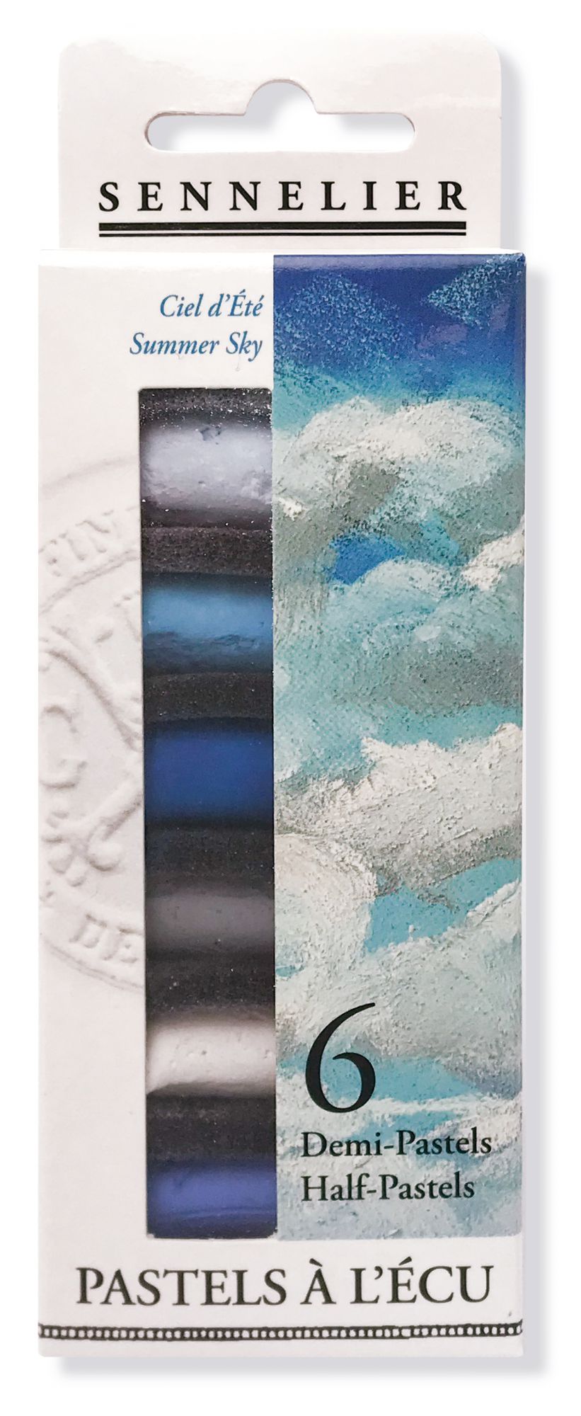 Les couleurs contenues dans ce set "Ciel d'été" sont : Bleu Outremer 395 et 392, Bleu Acier 714, Bleu de Ceruléum 257, Gris Bleu 423, Blanc 525.