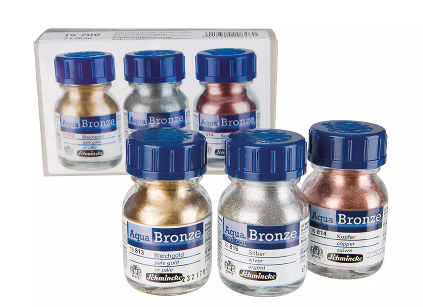 Les couleurs bronzes aqua de Schmincke sont idéales pour produire des effets métalliques brillants et scintillants avec des aquarelles ou gouaches, et elles donnent toujours un éclat fascinant aux créations. Les bronzes de cette gamme sont réalisés à partir de véritables pigments métalliques pour le plus grand plaisir des artistes.