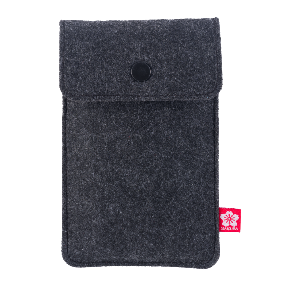 L’étui à stylo est durable et a été développé de manière responsable. Il est fabriqué à partir de polyester post-consommation. Il présente une texture gris chiné foncé, un bouton pression et une élégante étiquette Sakura cousue. L’accessoire parfait pour compléter l’équipement de travail de tout illustrateur. Facile à utiliser, cet étui pratique est suffisamment petit pour être rangé dans une poche de veste ou un sac. Son format est idéal pour les artistes qui aiment bouger.