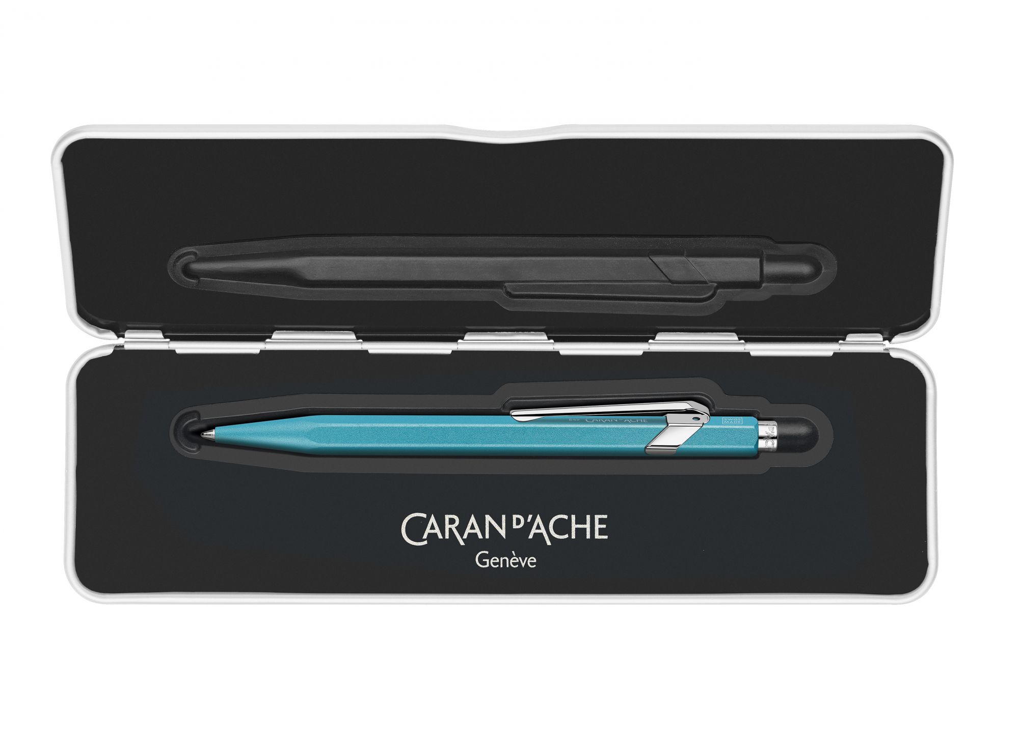 Reconnaissable au premier regard et véritable emblème de la Maison Caran d'Ache, le stylo bille 849 possède un corps hexagonal en aluminium, un clip et un bouton en métal. Héritier des préceptes du design industriel et de ses préoccupations ergonomiques, le stylo bille 849 est la promesse d'un grand confort d'écriture. La robustesse, le clip flexible et le bouton poussoir font du stylo bille 849 un compagnon quotidien fiable. Quant à la pointe en acier inoxydable de sa cartouche d'encre rechargeable, celle-ci glisse parfaitement sur le papier.