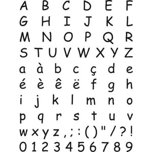 Réf. : 10001025  Set de tampons transparents (ou clear stamps) alphabet avec des lettresmajuscules, des chiffres et des ponctuations. Dimensions du set : 11 x 24 cm.Idéal pour le scrapbooking et la carterie créative.Tampons non montés à utiliser avec le set de blocs acryliques.Les tampons transparents (ou clear stamps) vous permettent de voir partransparence où vous positionnez votre motif ! Les bordures, alignements etreprises de motif sont ainsi facilités.