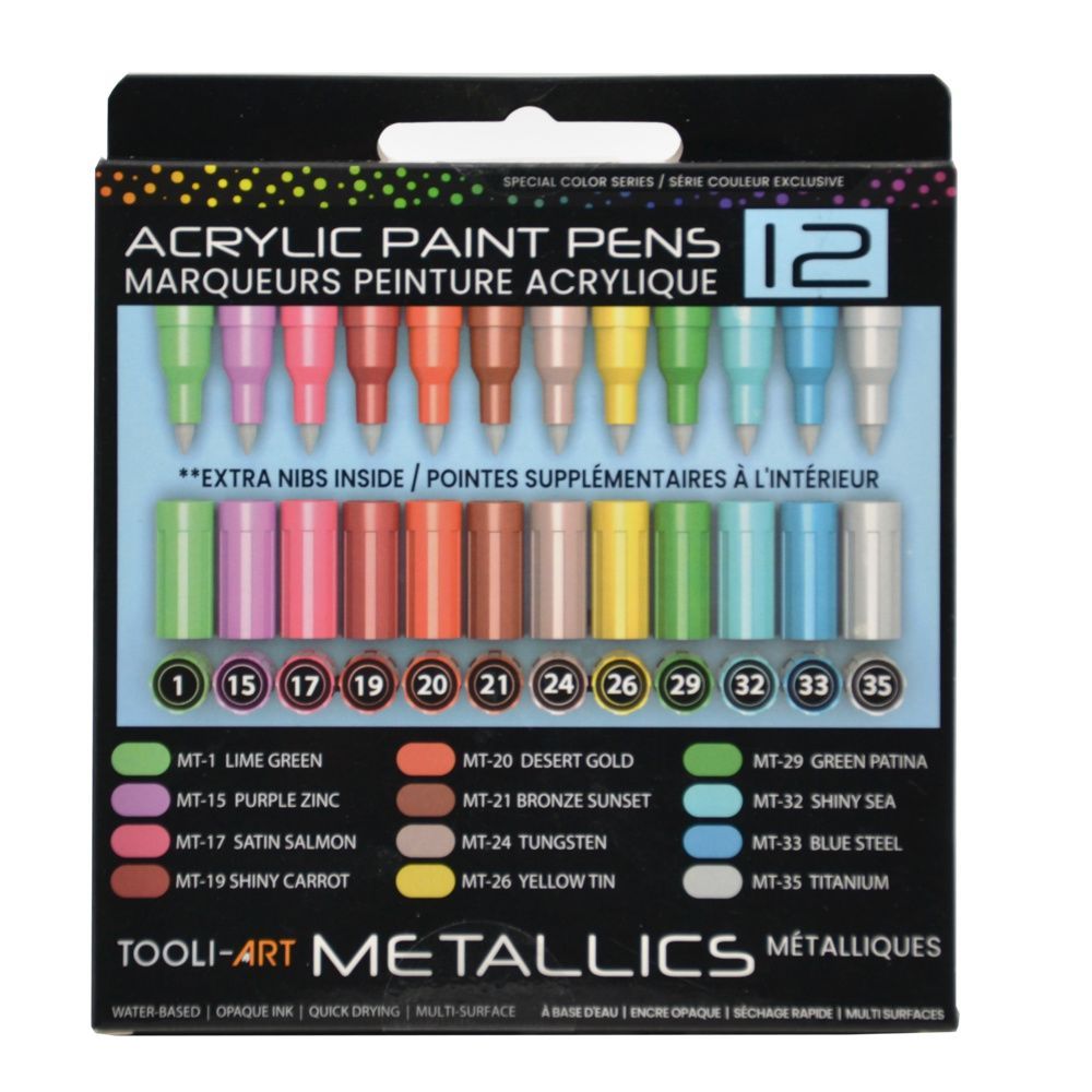 Ce set de 12 marqueurs métalliques apporte éclat et reflets à tous vos projets. Idéal pour sublimer vos illustrations, cartes, déco ou lettrages avec une touche lumineuse et originale. Leur encre acrylique fluide et couvrante adhère à toutes les surfaces : papier, bois, métal, verre…