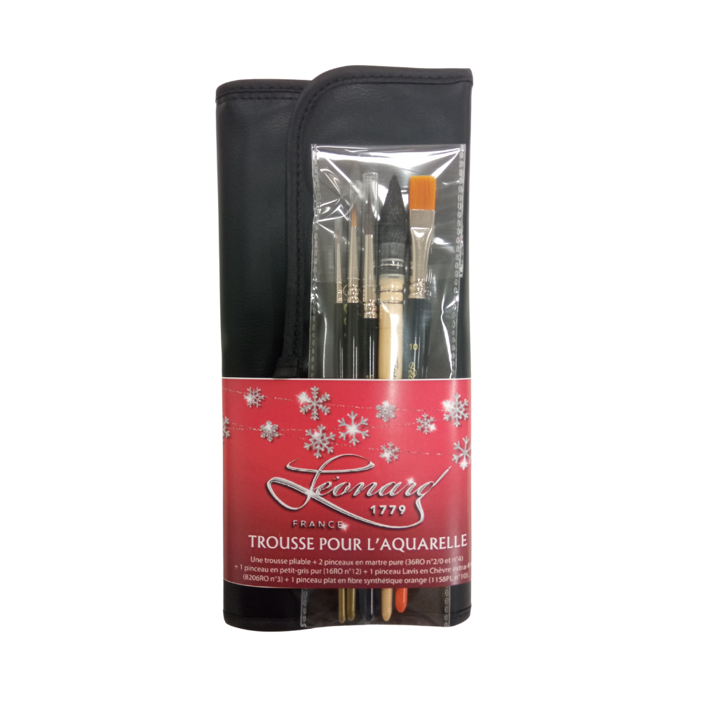 TROUSSE LEONARD REMPLIE POUR L'AQUARELLE : 5 Pinceaux