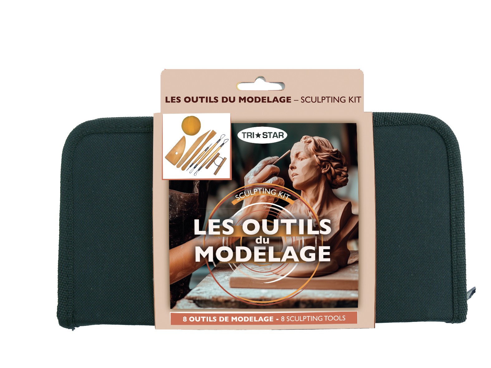Découvrez vite cette trousse de modelage et ses 8 outils. Pratique et facilement transportable, elle sera parfaite pour toutes vos créations de modelage (pâte durcis sante, pâte fimo, poterie...)