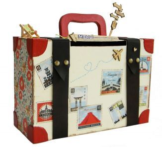 Urne en forme de valise en papier mâché mesurant 35 cm x 23.5 cm x 14.5 cm environ