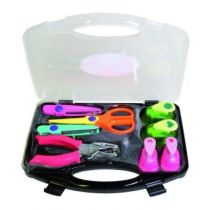 Réf. : 10003026 Valisette scrapbooking en plastique comprenant 8 outils de bases, notamment pour les débutants.