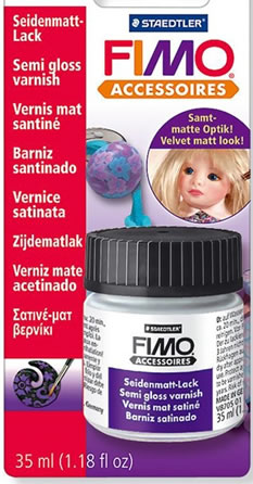 Réf. : 264120 FIMO Vernis mat satiné, 35 ml en flacon à base d'eau, pour protection de surface, haute résistance aux rayures, transparent après séchage, nettoyage facile des pinceaux à base d'eau, résistant à la lumière et à l'eau,pour pâte à modeler.