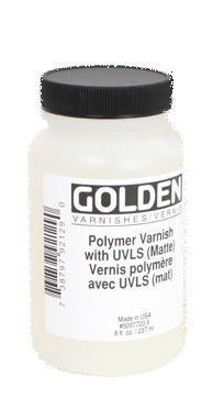 Plus épais que les vernis traditionnels, le vernis polymère avec UVLS Golden protège les pigments contre la perte de leur éclat, se dilue à l'eau distillée, s'applique au pinceau ou au pistolet, adhère à la plupart des surfaces poreuses et non grasses, et est non-jaunissant.