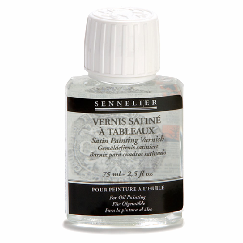 Vernis à tableaux à base de résine de synthèse, intermédiaire entre le vernis brillant et le vernis mat.